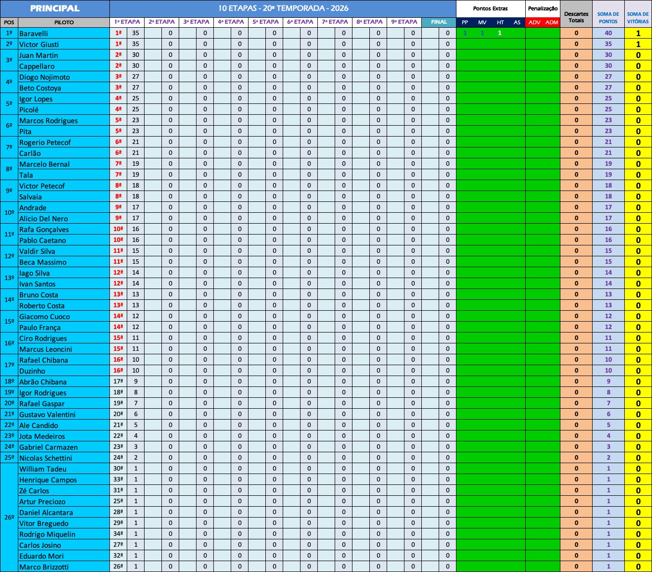 Home > Classificação 2026 – 20ª Temporada