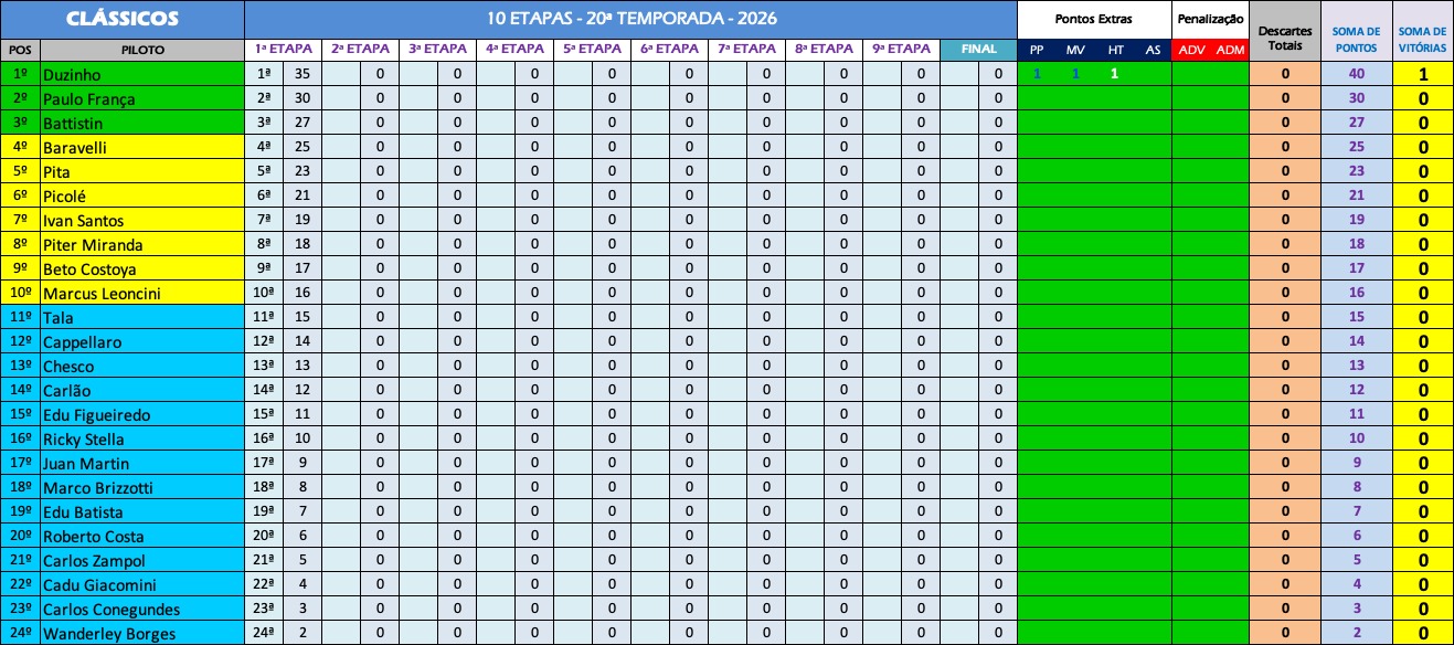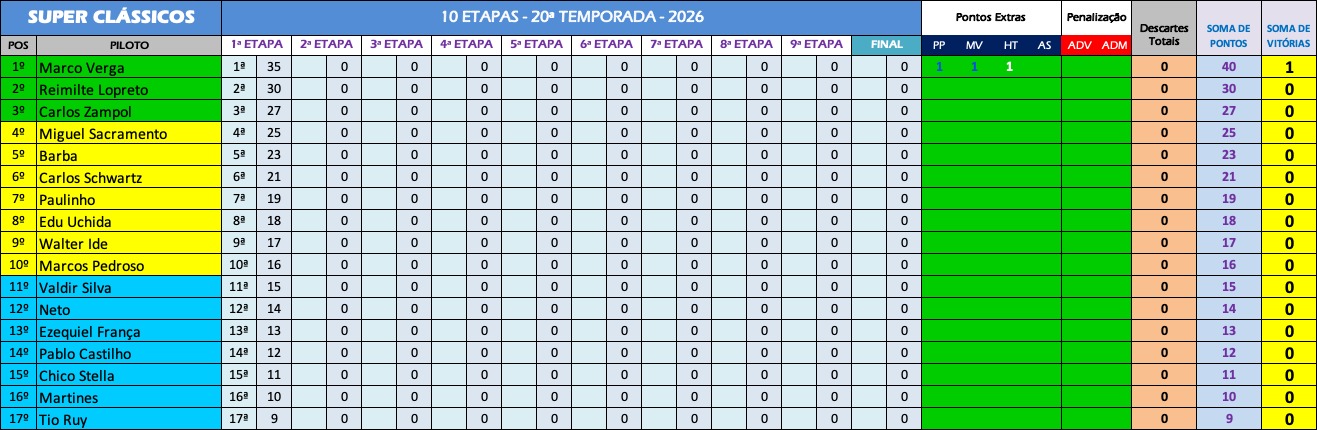 Classificação 2026 – 20ª Temporada